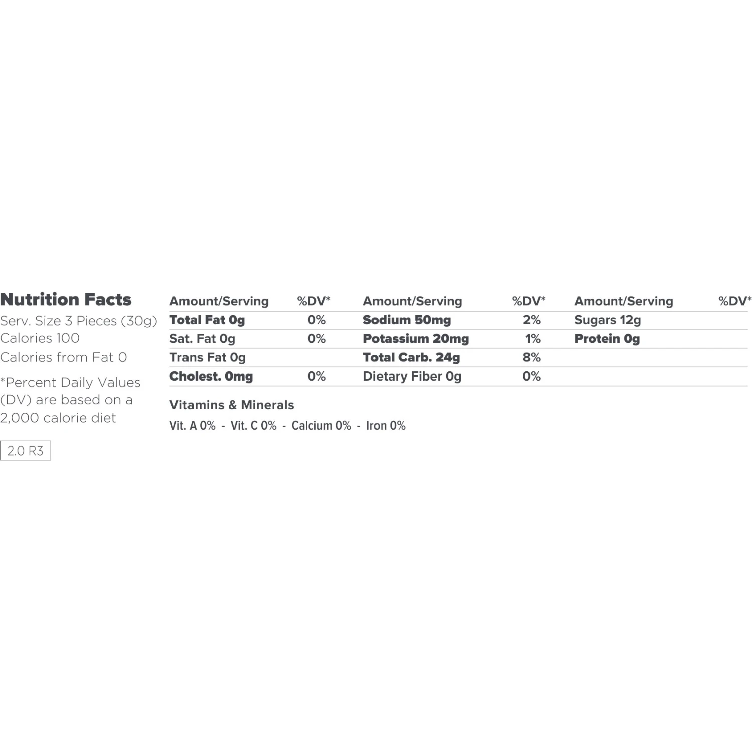 | Ingredients: | Organic Tapioca Syrup, Organic Dried Cane Syrup, Organic Maltodextrin, Pectin, Citric Acid, Colored with Black Carrot Juice Concentrate, Natural Flavor, Potassium Citrate, Green Tea Extract, Sea Salt, Organic Sunflower Oil, Carnauba Wax.Nutrition and |