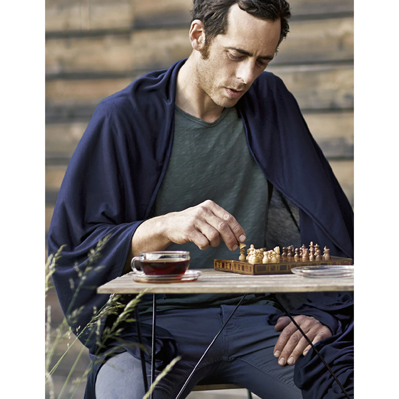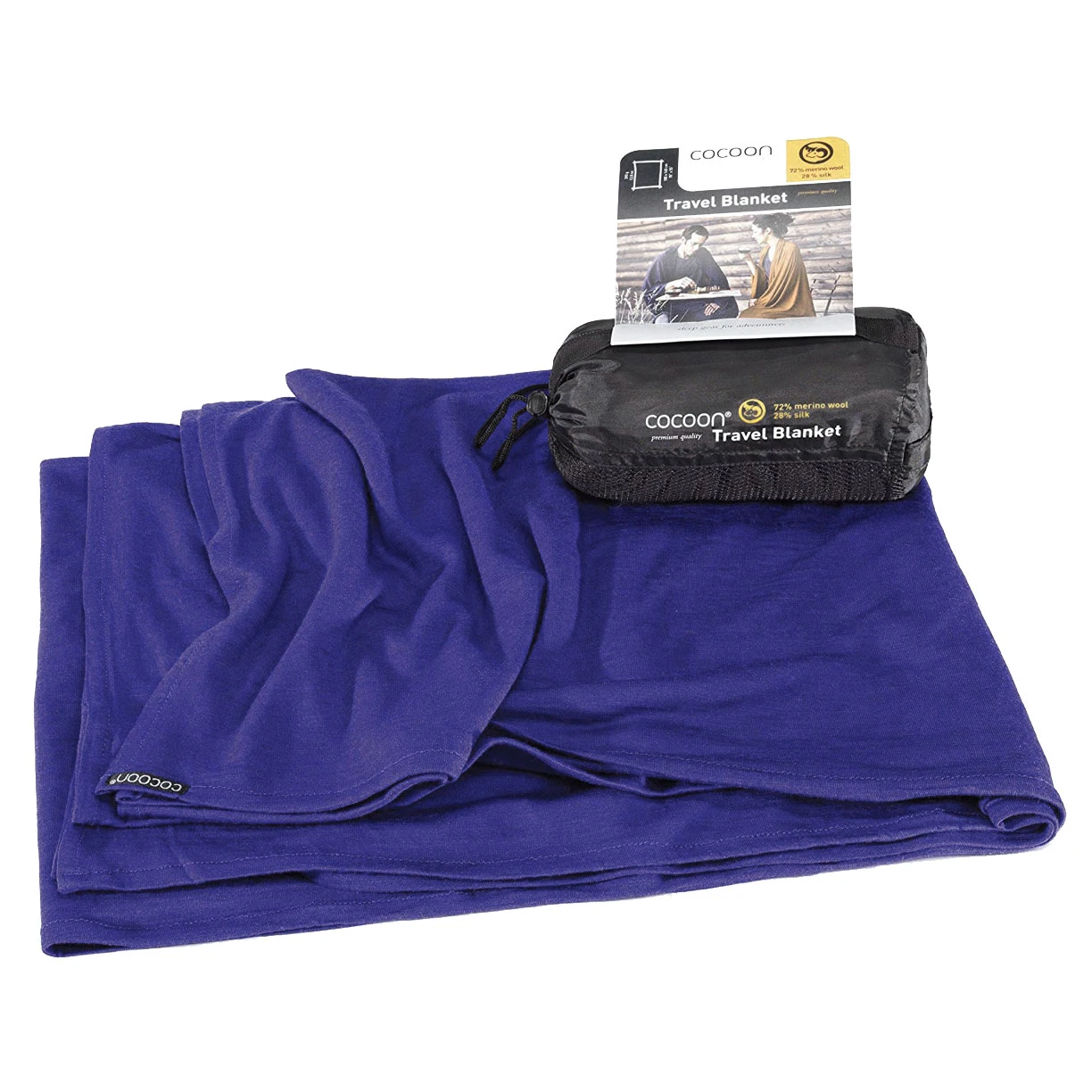 The Merino Wool and Silk Blanket from Cocoon is a lightweight, soft, travel blanket made of machine washable merino wool and silk that avoids odors.