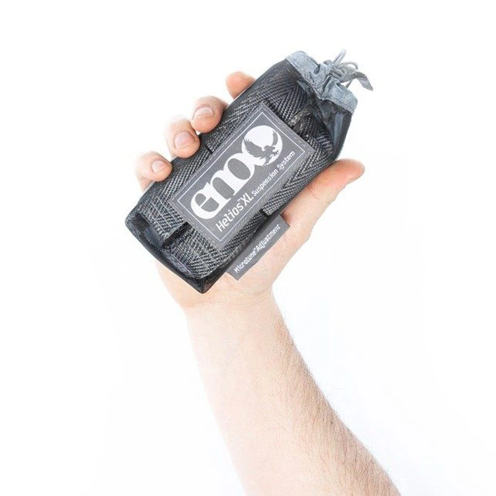 The Helios XL has all of the light and strong aspects of ENO’s original Helios Strap but with 5 extra usable feet in length. The Helios XL sets up in a flash and provides superior adjustment with a bury splice. With 13 feet 5 inches of length, the Helios XL has you covered in even the stickiest of situations.