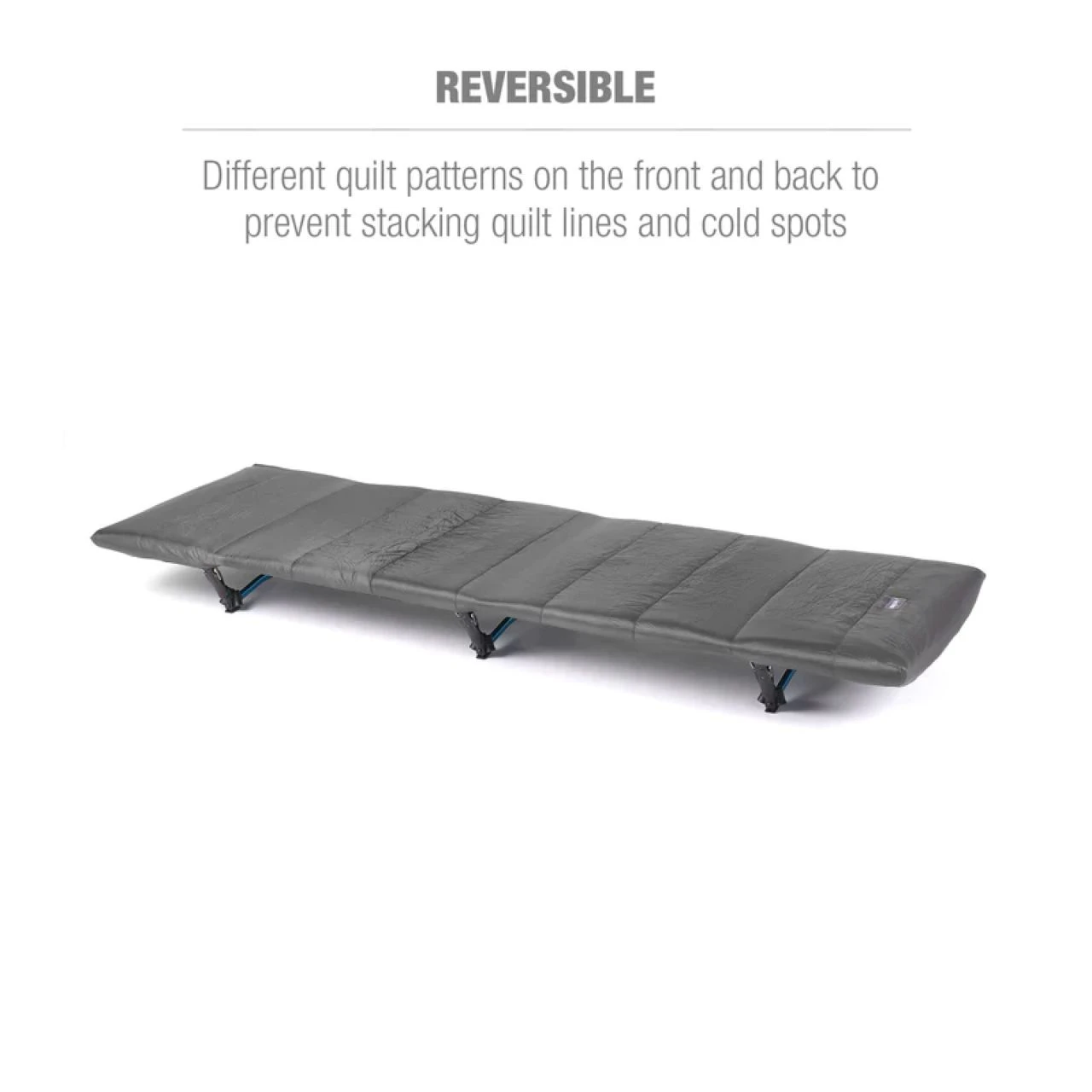 A puffy accessory for your Helinox Cot One. This reversible, quilted cot warmer provides soft warmth, extra cushioning and draft protection for cold outdoor adventures.
