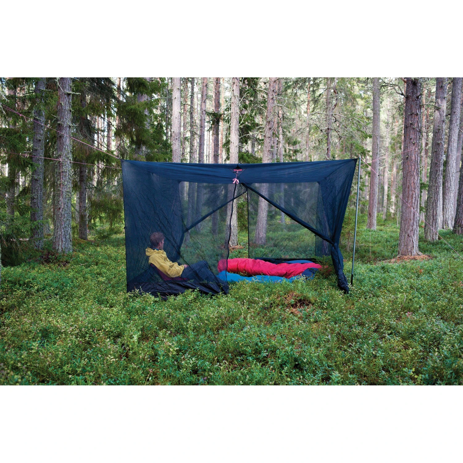 For those who prefer summer camping with a tarp, and for trekkers in tropical and sub-tropical areas, a major issue is always the bugs. Hilleberg’s Mesh Box shelters provide the solution. The Mesh Box 20 is a superb minimalist’s summer tarp camping solution. The palatial Mesh Box 20 has a generous, full standing height and matches up with the Tarp 20 (sold separately). It will comfortably sleep 4 to 6 people or provide a gathering area for quite a few more. The Mesh Box 20 has full mesh ceilings, allowing for sky viewing when used without a tarp. The Mesh Box 20 is floorless and the lower part of the walls are silicon-coated fabric, both to protect the mesh from catching or tearing on the ground, and to provide a good “seal” on uneven terrain. It is easily suspended from rings, and pairing with tarps is straightforward.
