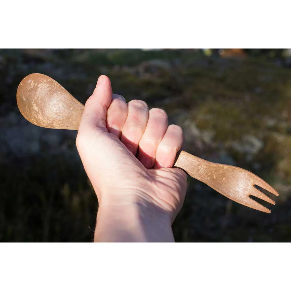 The ecological Kupilka dishware can withstand boiling hot water and sub-zero temperatures as cold as -30°C. The dishes can be washed by hand in the wild or in the dishwasher back home. The products are manufactured from Kupilka’s own biomaterial using EKOenergy, and each item ages beautifully yet keeping its qualities. You can check how fresh the product is from its wooden scent – the stronger the scent, the newer the product! To ensure the longevity of the dishes, we do not recommend putting them in the microwave, stove or open fire. At the end of their life span, the products can be recycled, incinerated for heat energy or returned to the manufacturer for re-use. The Kupilka packaging is made from recycled cardboard.