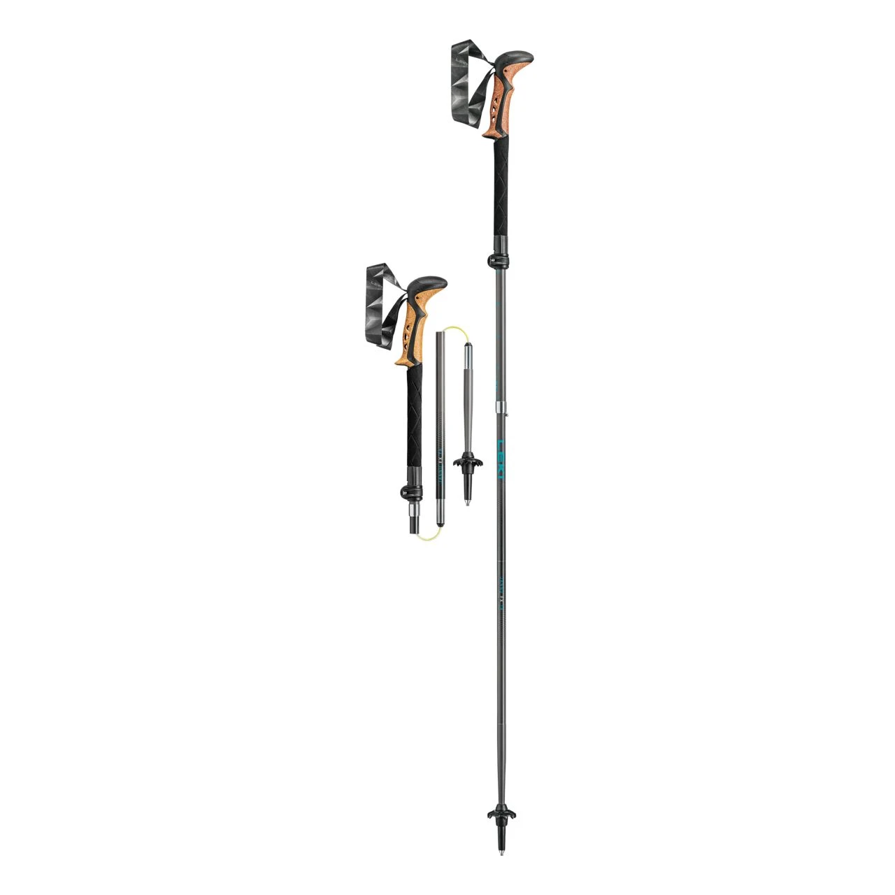 With the Jannu FX TA, Leki expands its popular folding pole construction with their COR-TEC grips in a women’s-specific model. Specifically designed and engineered for women with smaller grips, shorter straps and overall smaller dimensions. The push-button release mechanism allows for quick, easy extension and collapse into three sections measuring just 15.5″, making it a cinch to stow away in your backpack when not in use. The Speed Lock Plus lever allows for infinite adjustment between 100 and 120 cm.