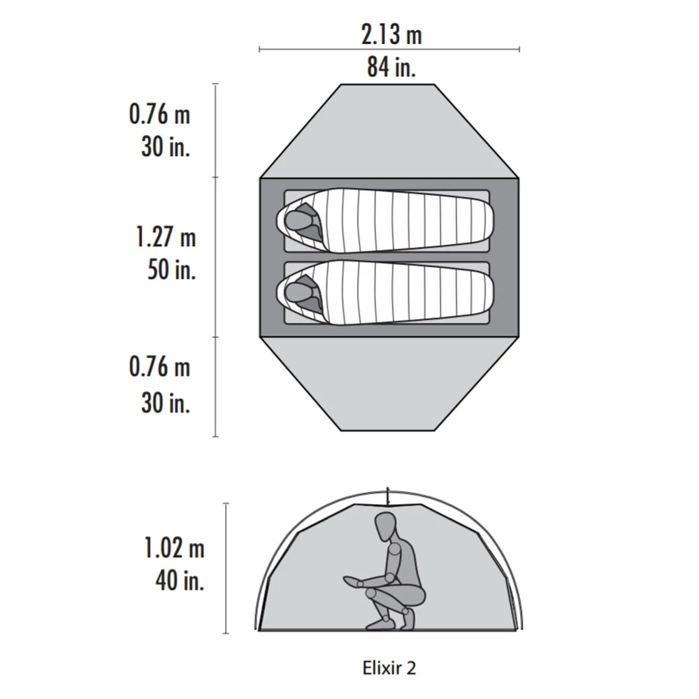 The MSR Elixir 2 tent is an extremely livable performance camping and backpacking tent and an ideal option for adventurers seeking an easy-to-assemble tent at a great value. Unlike many tents in this class, its freestanding design offers true-to-size capacity for two and features two large doors plus large vestibules with 35% more space than the previous version. This versatile tent balances breathable mesh fabric with solid canopy fabric to provide ventilation, warmth and privacy, while the included footprint offers multiple setup options, including a freestanding Fast & Light pitch with rainfly. Whether you’re planning your first backpacking trip or your next one, the Elixir 2 tent is your remedy.