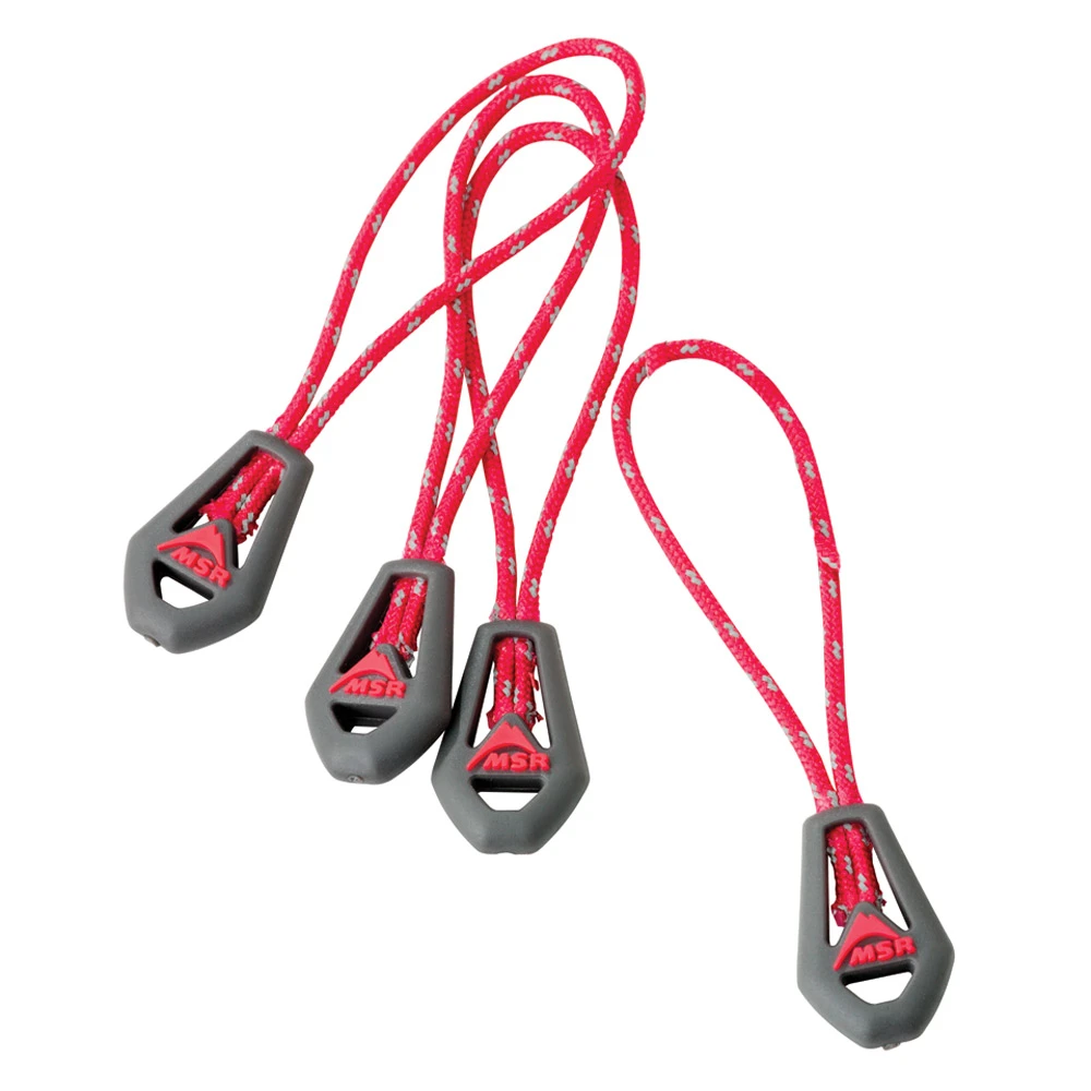 The Universal Zipper Pulls from MSR is a set of 4 reflective, lightweight plastic tent zipper tabs to replace noisy metal ones that may clink.