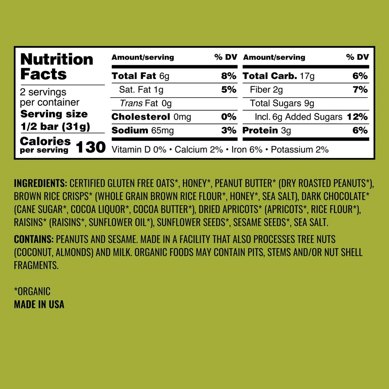These Peanut Butter Dark Chocolate Bars pack in 3 grams of protein per serving to help fuel your outdoor adventures or busy day. All of Kate’s Real Food products are made with certified gluten-free oats, making them a good choice for those with gluten allergies or intolerances.
