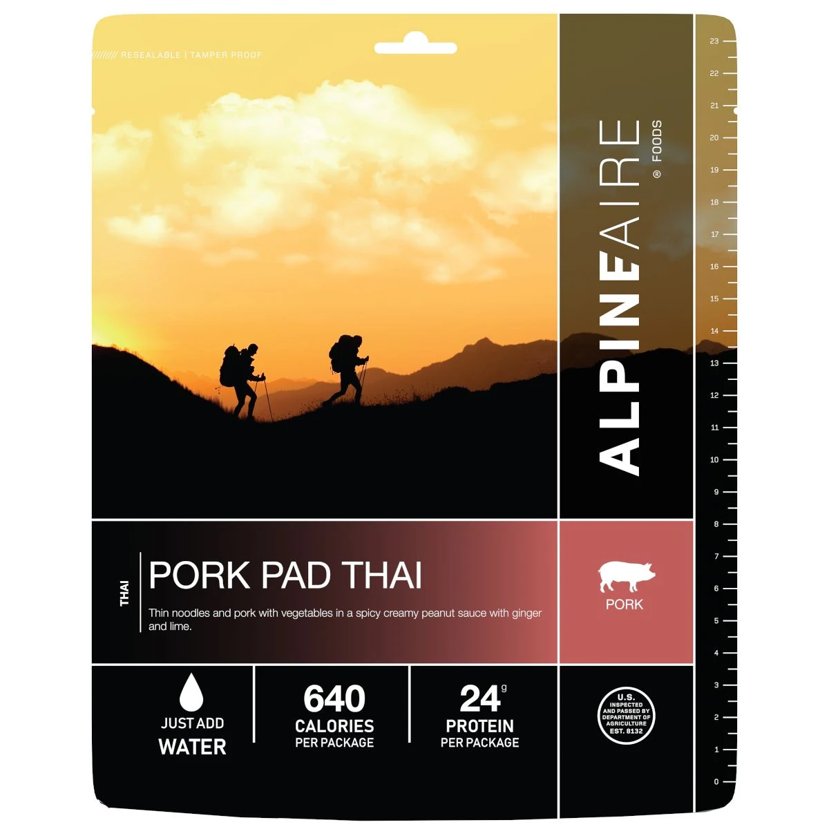 AlpineAire Foods Pork Pad Thai – Thin noodles and pork with vegetables in a spicy creamy peanut sauce with ginger and lime.