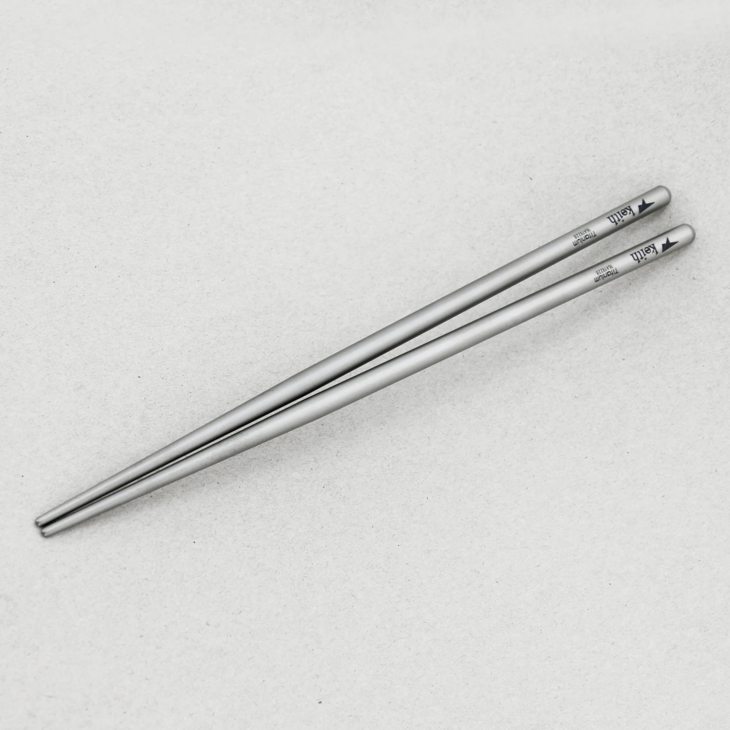 The Round Titanium Chopsticks from Keith is a pure titanium utensil set in two thickness options for camping and traveling eating.