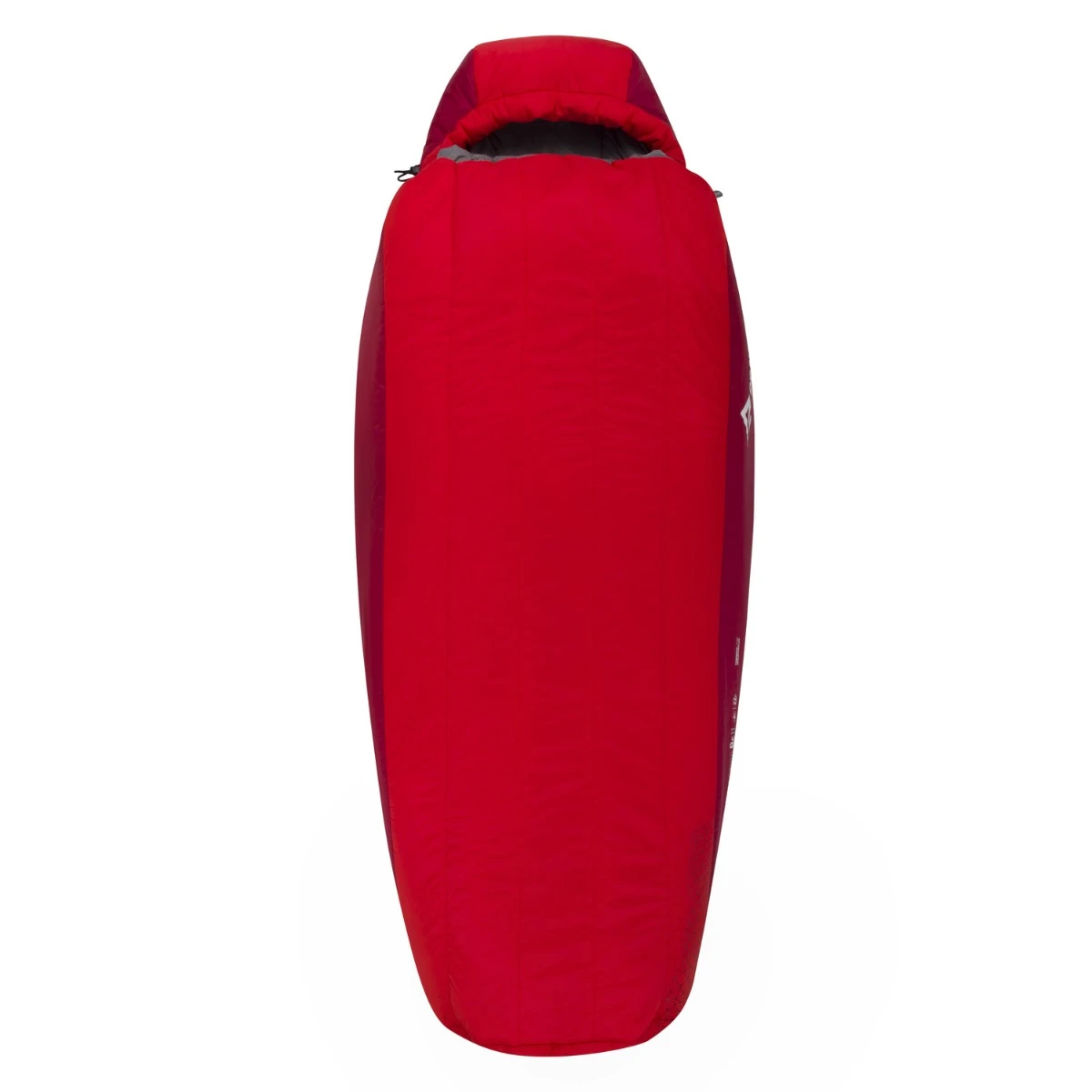 The Basecamp Thermolite® synthetic sleeping bag is for those whose preferred style of camping is returning to the same campsite each evening to a luxurious and versatile sleep system. Each side of the Basecamp has a full-length side zipper; a third zipper can be found in the foot box zipper. The result is unmatched ventilation and the ability to remove the entire top section to use as a quilt.