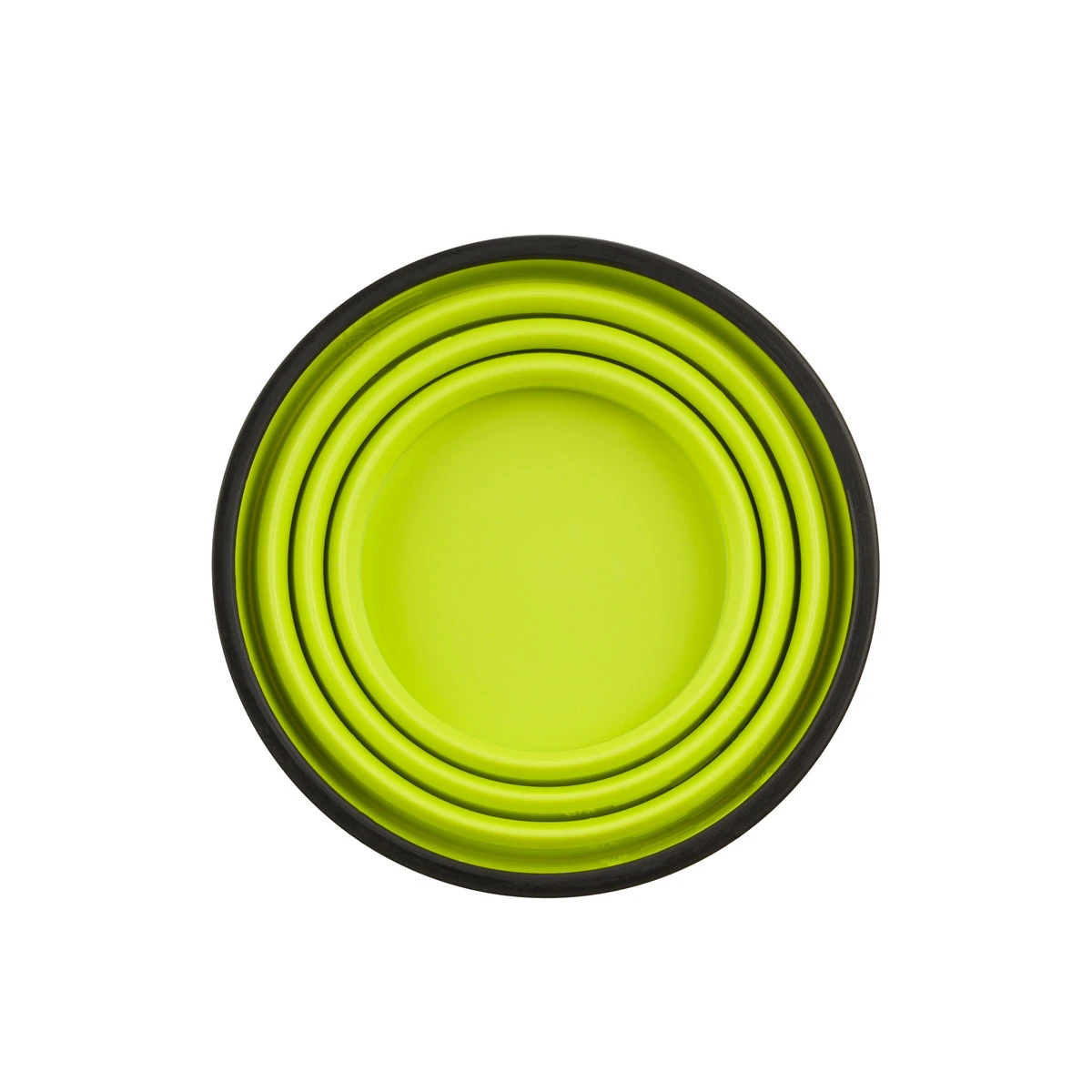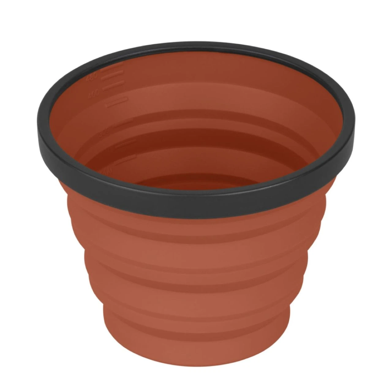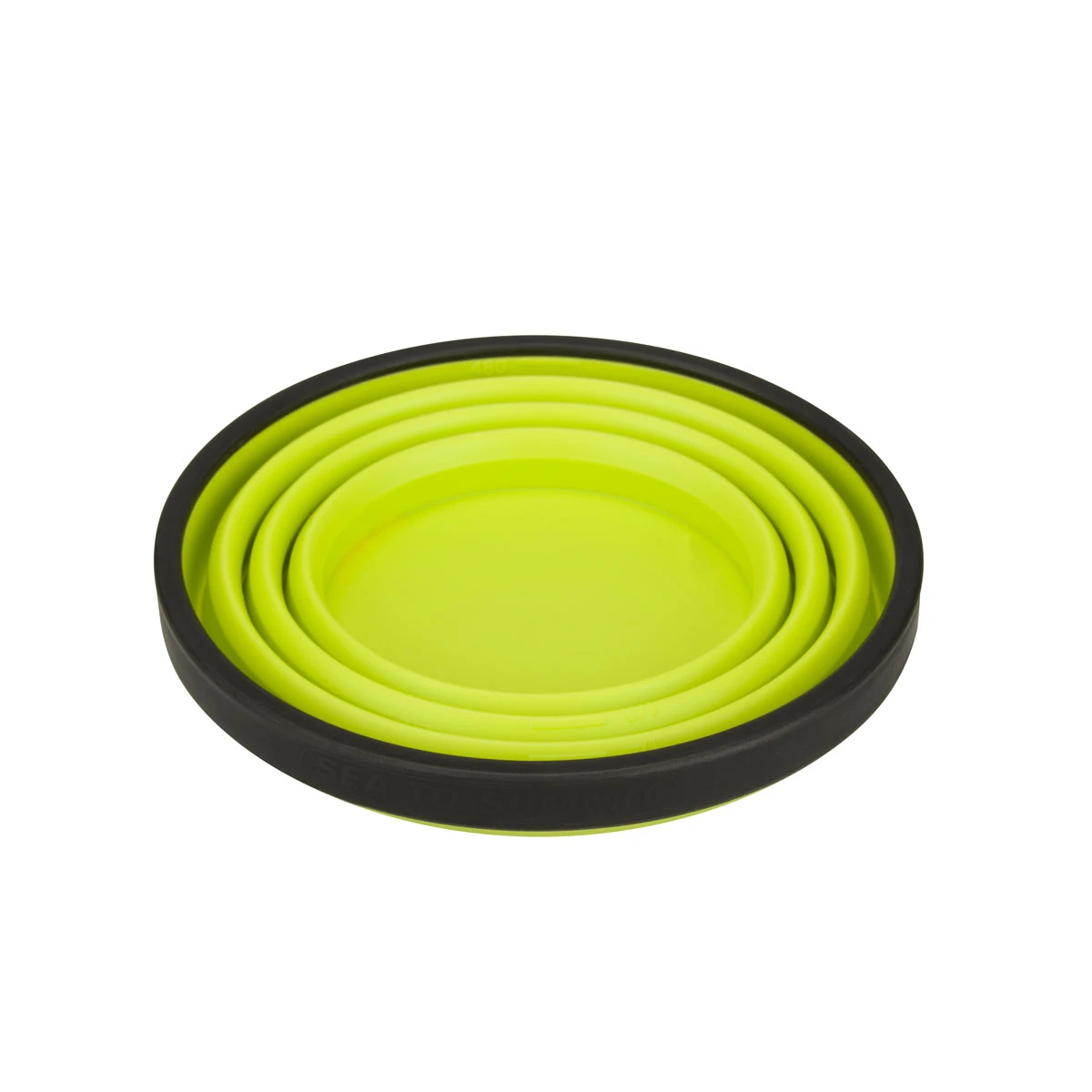 The X-Mug is a collapsible mug that is also calibrated as a measuring cup. The flexible silicone sides collapse making this a small compact disc sized dinnerware piece that nests neatly with other X-Series dinnerware and X-Pots.
