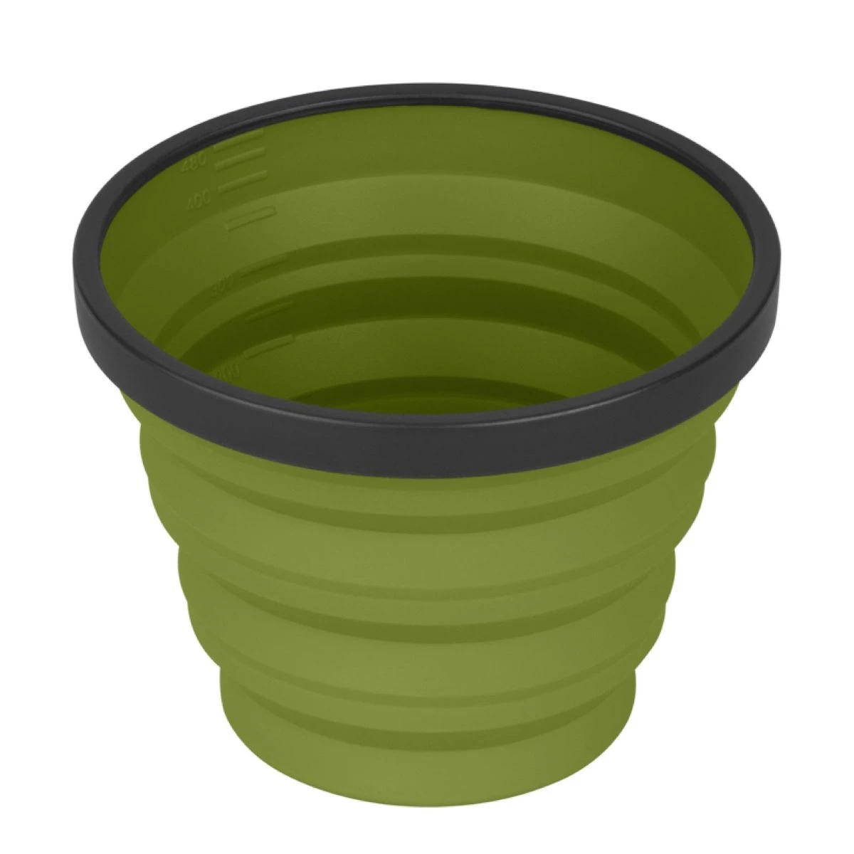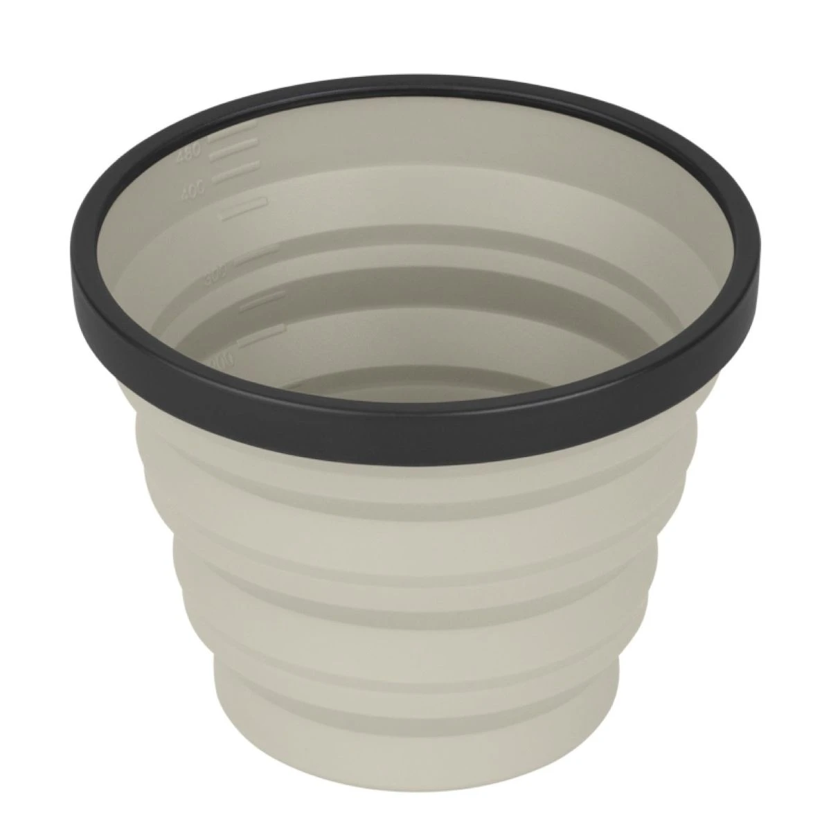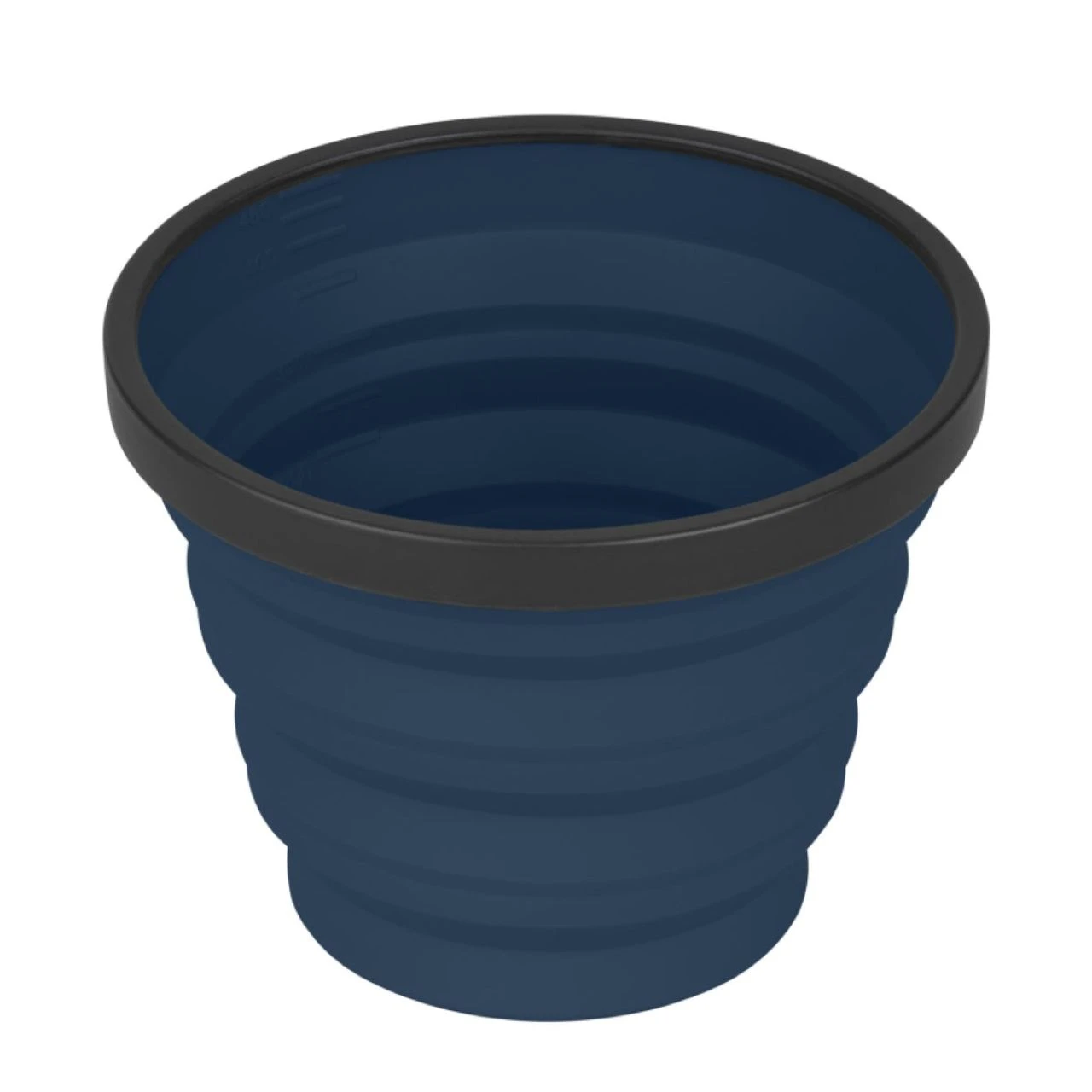 The X-Mug is a collapsible mug that is also calibrated as a measuring cup. The flexible silicone sides collapse making this a small compact disc sized dinnerware piece that nests neatly with other X-Series dinnerware and X-Pots.