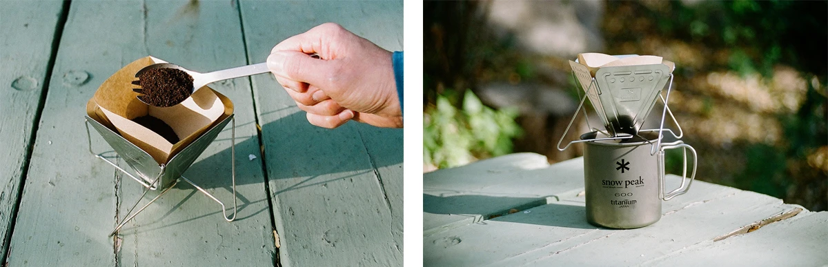 Using the Snow Peak Fold Down Coffee Drip is easy: just add your favorite coffee and a filter and pour on boiling water. You can adjust the flavor as you like by adjusting the way the water is poured and the amount of coffee.