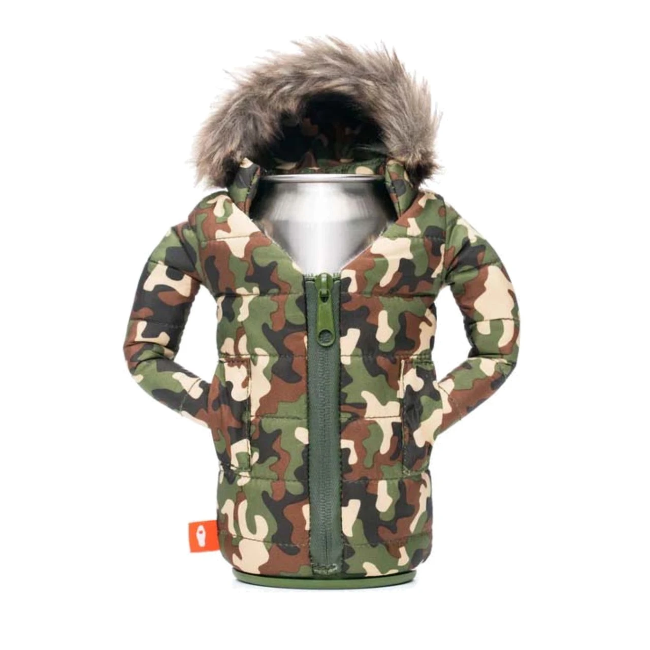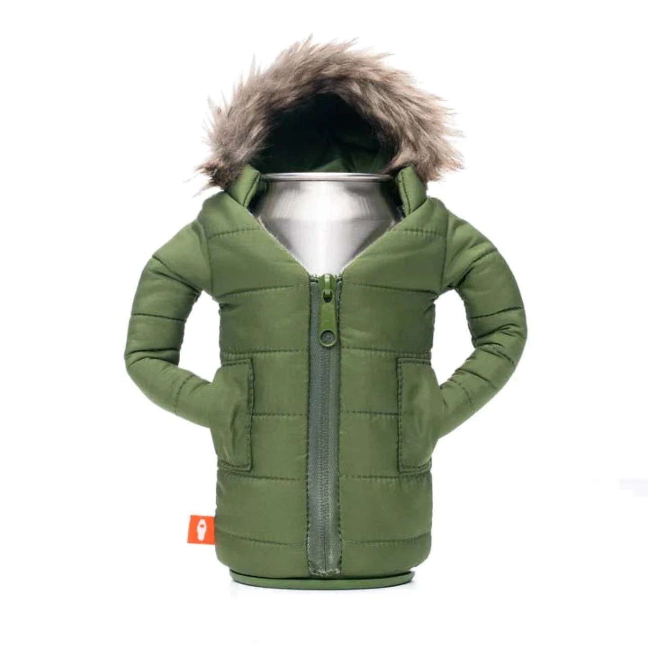 Add some flare to your winter drinkwear wardrobe with a cozy Puffin Parka. The faux fur-lined hood brings a touch of glamour to a timeless classic. This diva will keep your drink cold and looking fabulous.