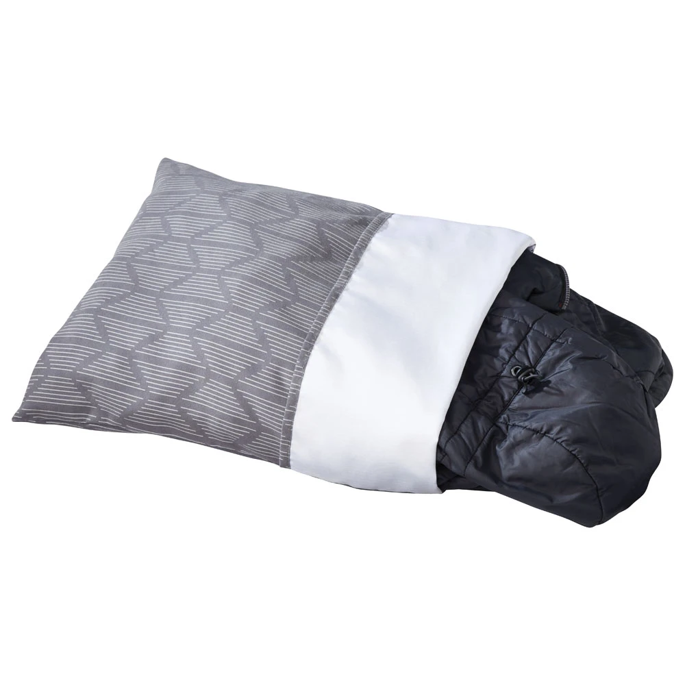 This ultralight pillow folds up small enough to fit in a shirt pocket and becomes a soft pillow when clothes are stuffed inside. Perfect for backpacking or travel.