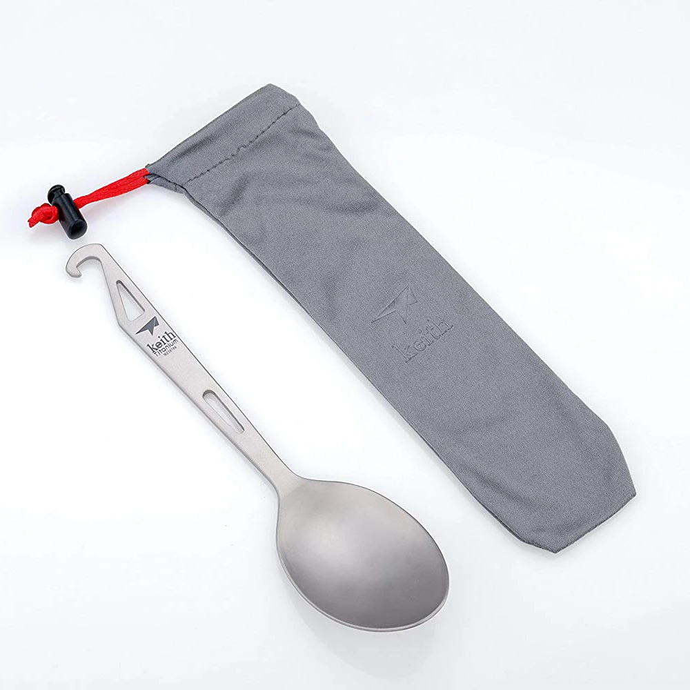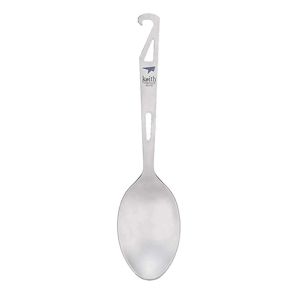 The Titanium Spoon with Bottle Opener from Keith is an ultralight titanium utensil that packs versatility into a durable tool for camp kitchens.